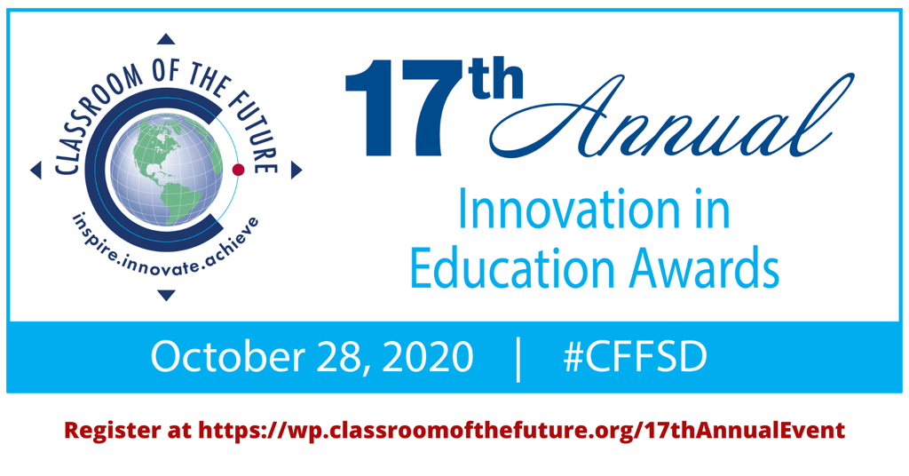 On October 28, 2020, the Classroom of the Future Foundation (CFF) will hold its 17th Annual Innovation in Education Awards as a virtual event. This event brings together educators and business leaders to highlight champions of educational innovation in the community, as well as exceptional students pursuing careers in STEM education.
