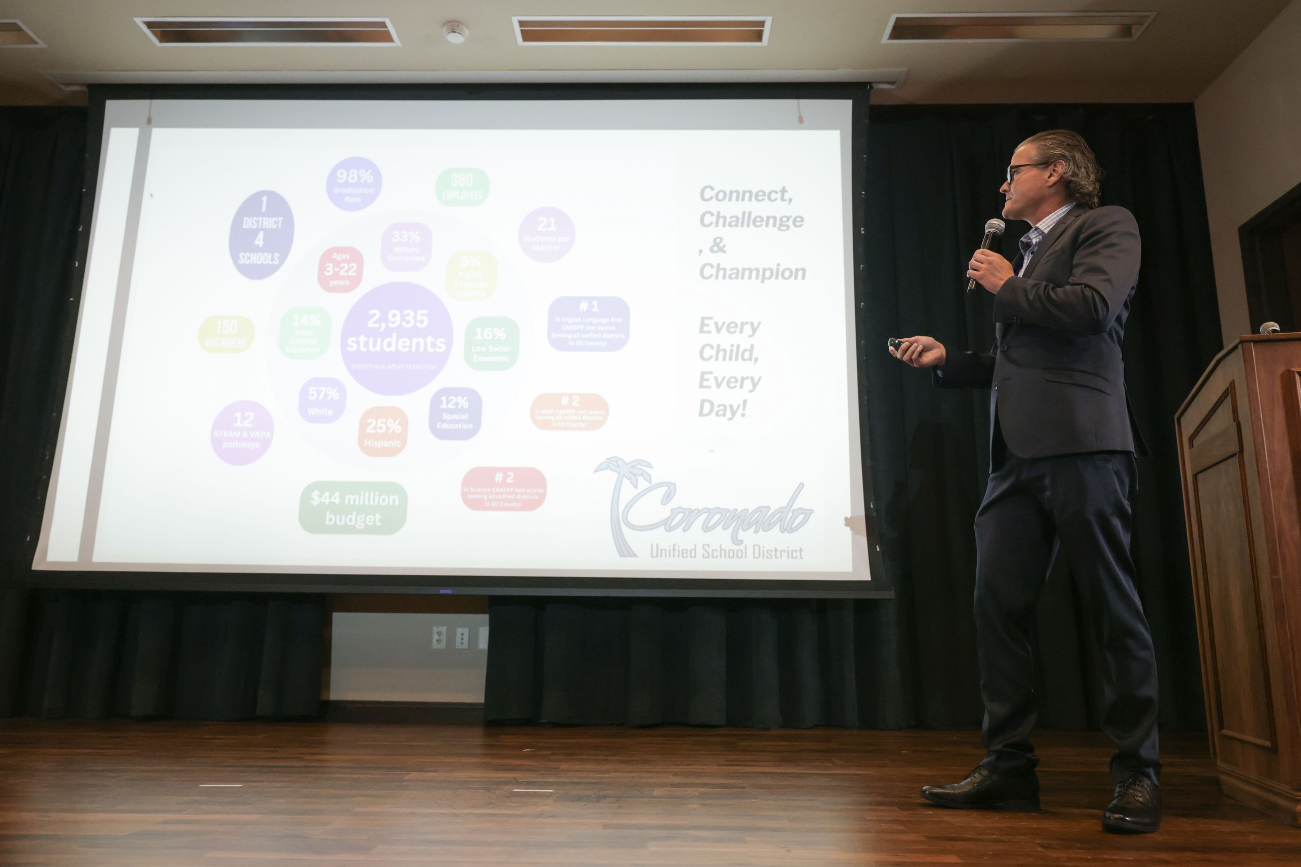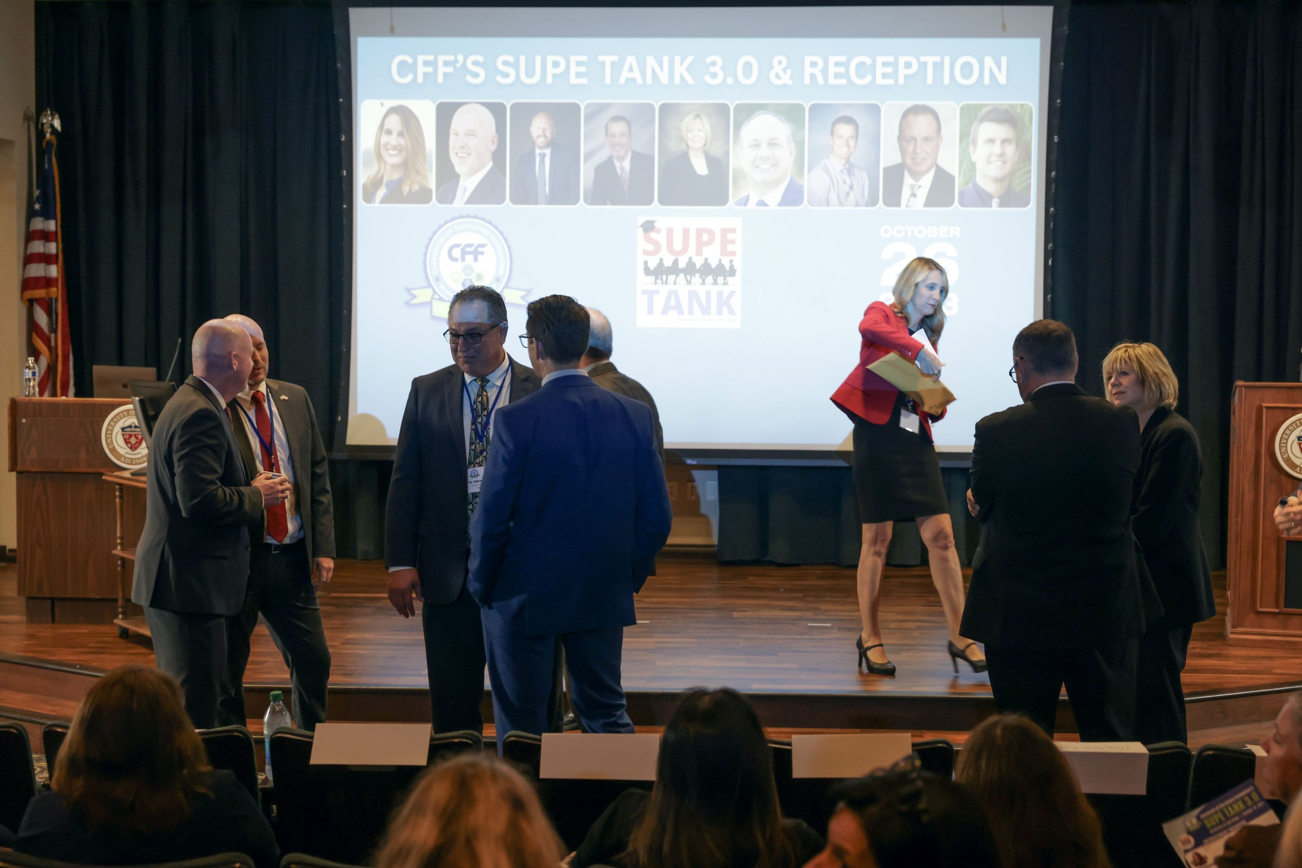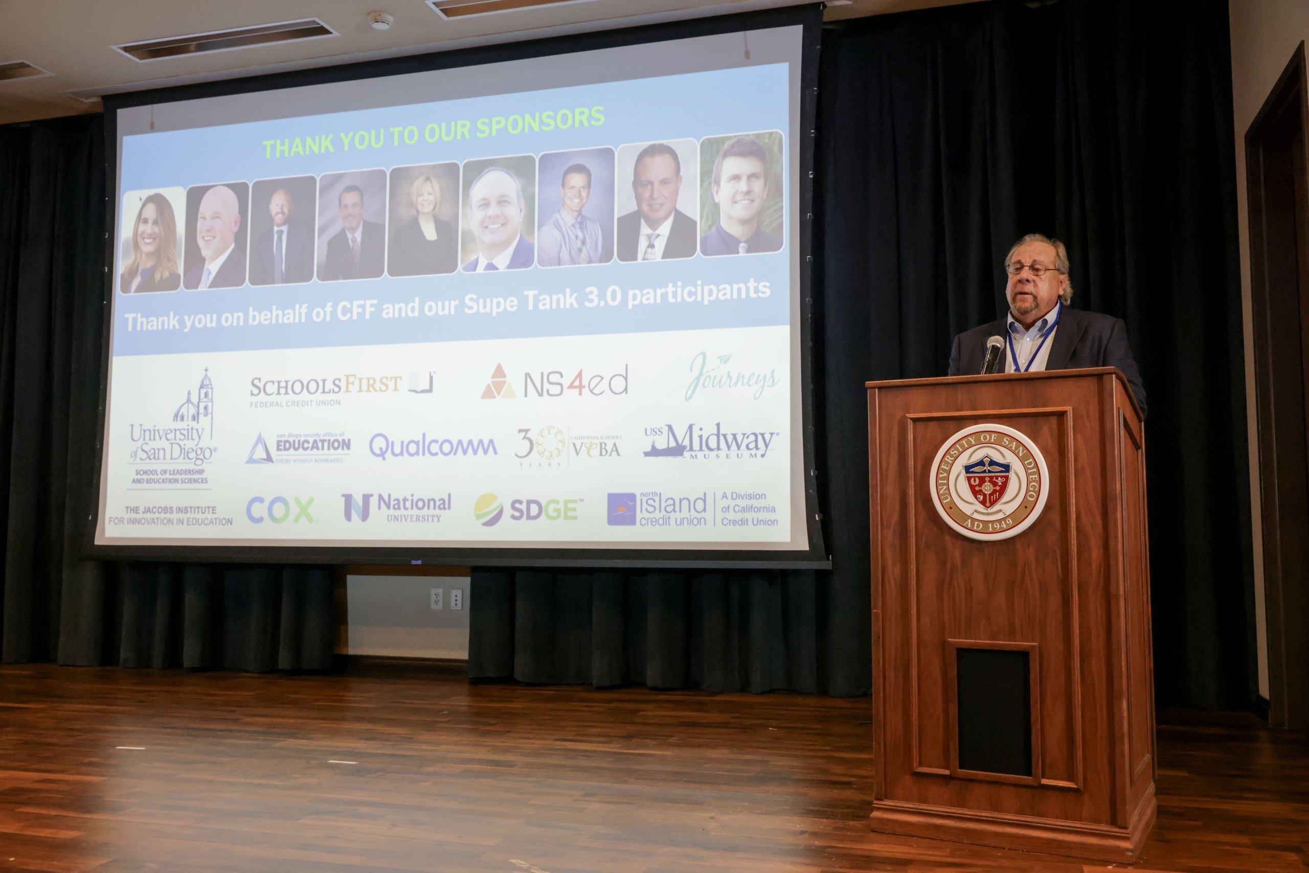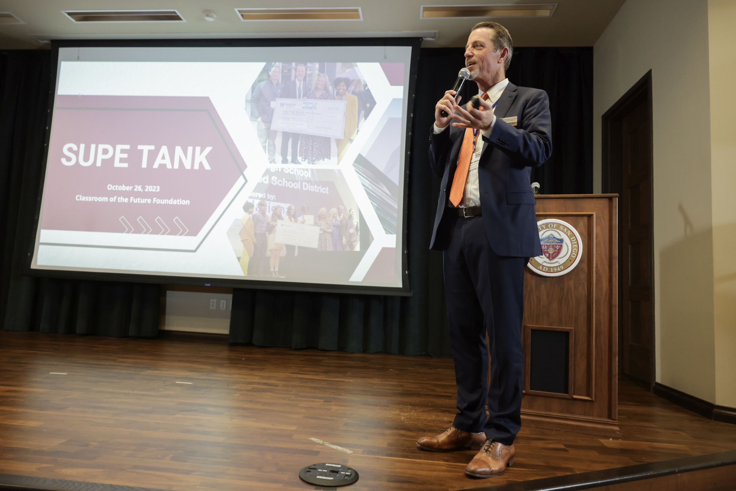 The Classroom of the Future Foundation (CFF) hosted “Supe Tank 3.0” at the University of San Diego on Thursday, October 26, 2023. Nine superintendents from school districts throughout San Diego County participated in “Supe Tank 3.0″—a “Shark Tank”-like format—where each Supe pitches an innovative program, initiative or idea to local business and community leaders.