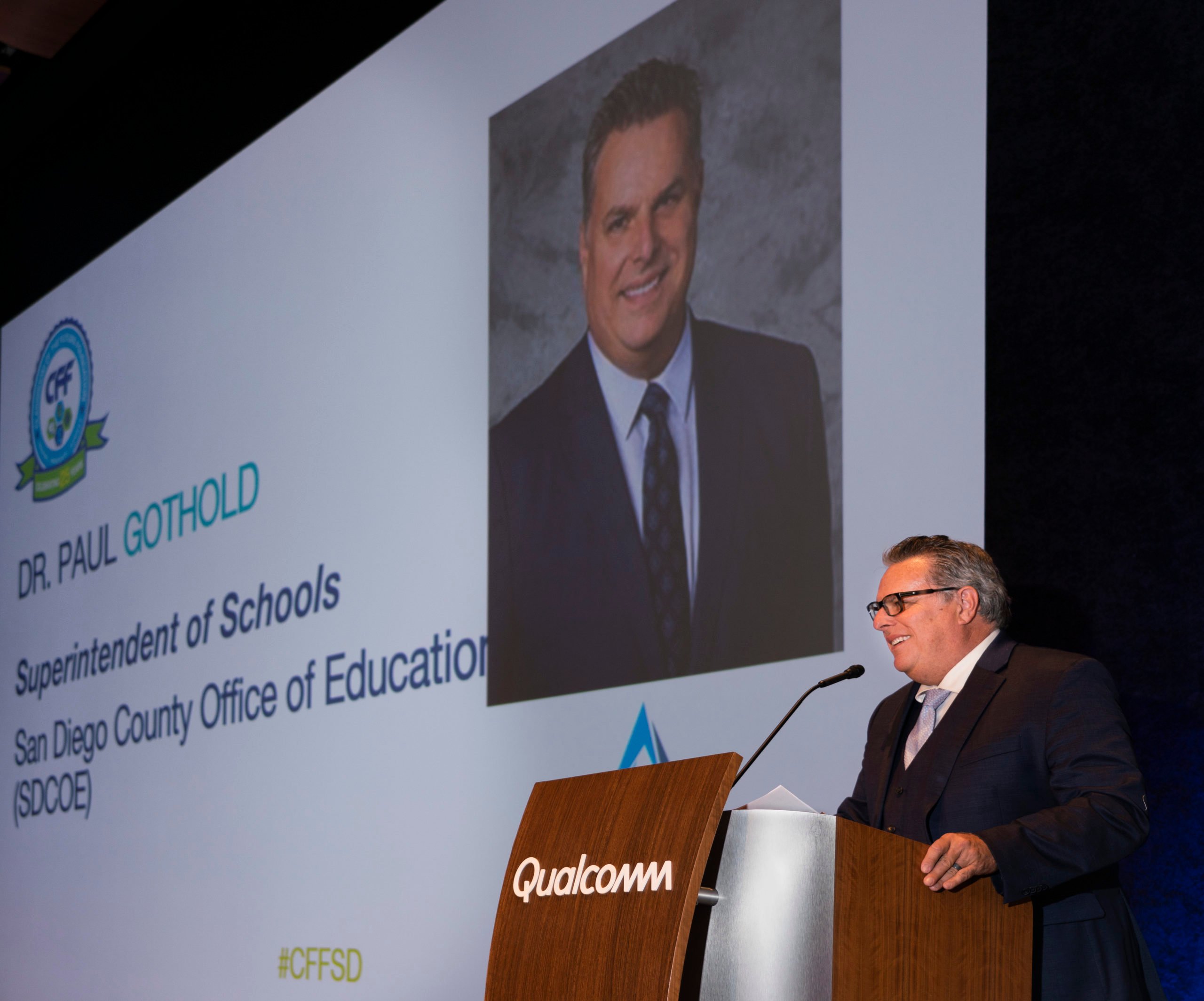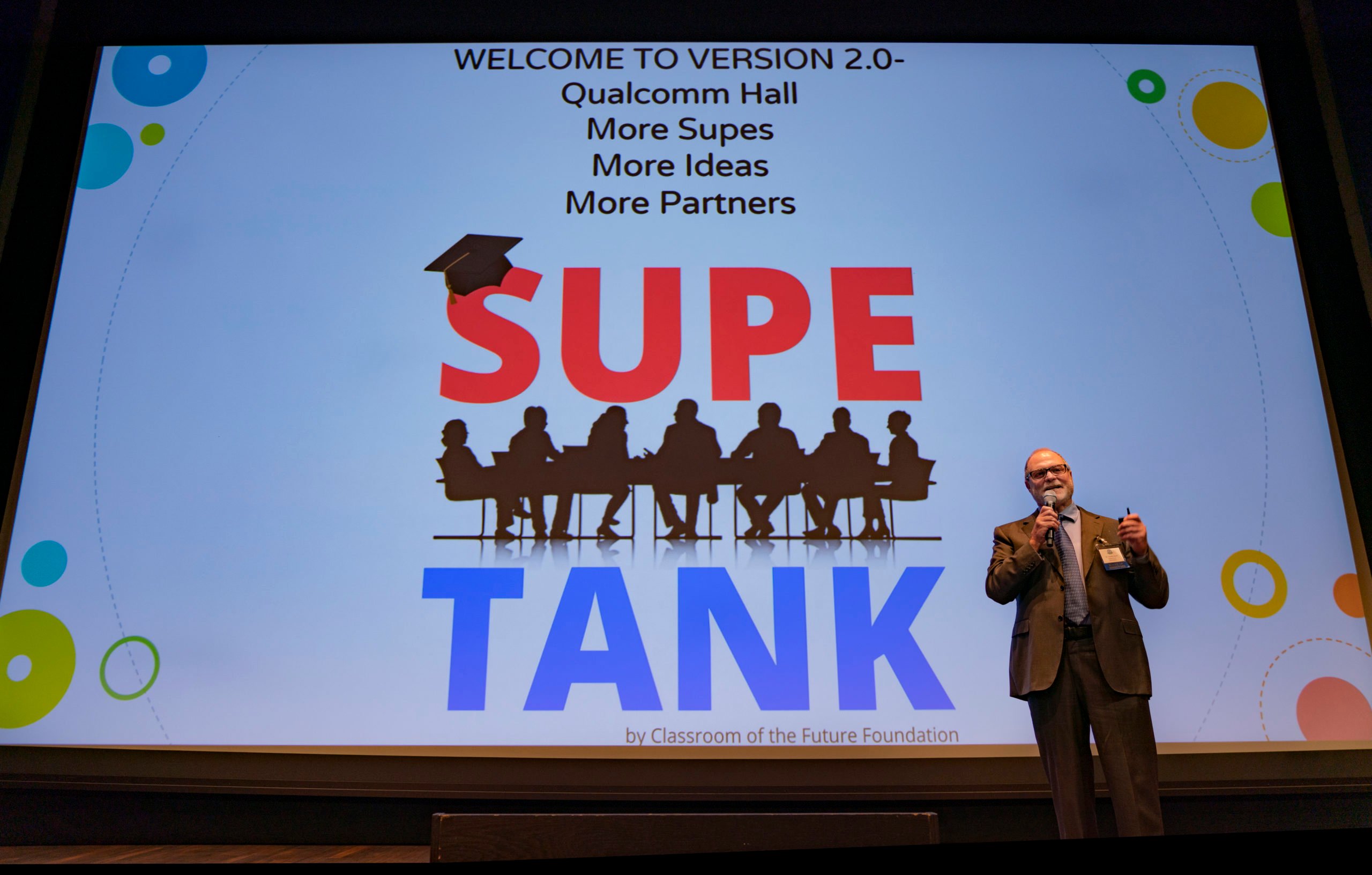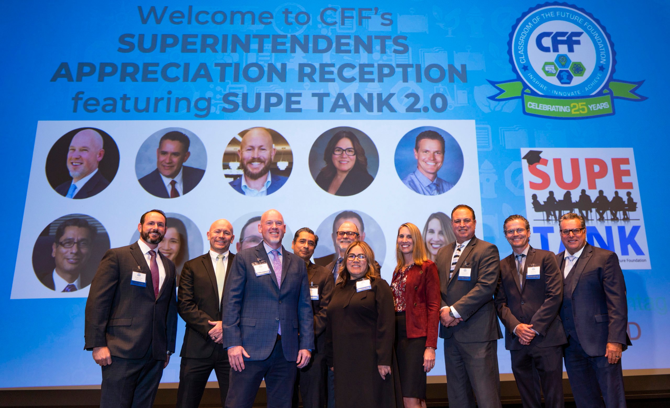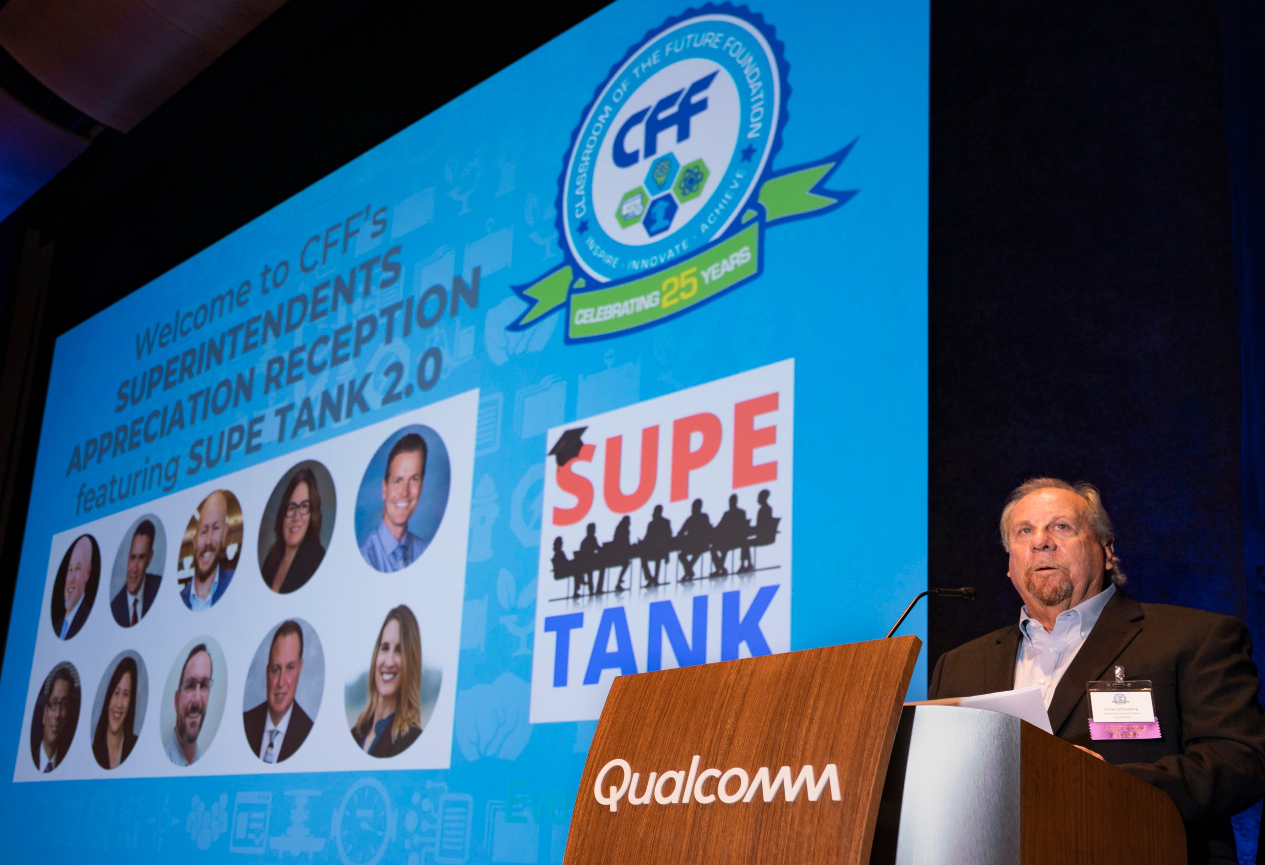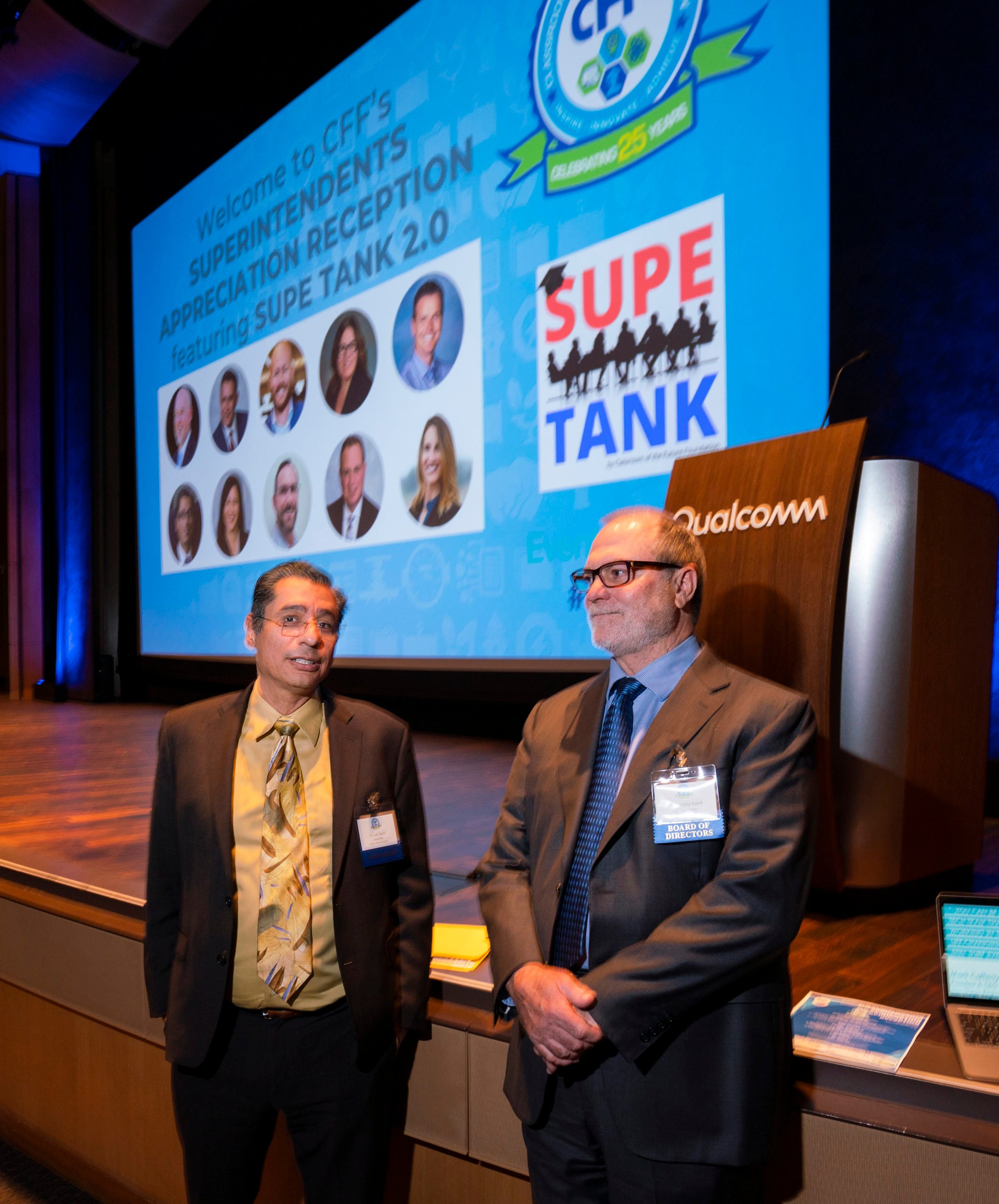 The Classroom of the Future Foundation (CFF) hosted the “Superintendents Appreciation Reception featuring Supe Tank 2.0” at Qualcomm Technologies on Tuesday, November 1, 2022. Nine superintendents from school districts throughout San Diego County participated in “Supe Tank 2.0″—a “Shark Tank”-like format where each Supe pitches an innovative program, initiative or idea to local business and community leaders.